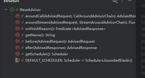 接下来一起重点关注BaseAdvisor接口,说这个是接口,实际上约等于抽象类。借助于interface的default方式,让接口的能力逐步趋近于抽象类,同时不被抽象类的单继承所限制。因此不要感觉诧异。