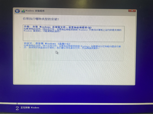 在安装类型选择界面,选择 “自定义:仅安装 Windows(高级)”,这是全新安装系统的选项。