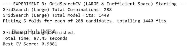 print("--- EXPERIMENT 3: GridSearchCV (LARGE & Inefficient Space) Starting ---")