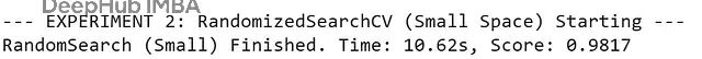 print("--- EXPERIMENT 2: RandomizedSearchCV (Small Space) Starting ---")