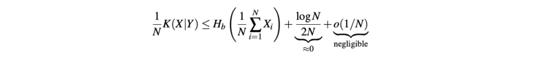 给定完整物理定律 Y 的条件柯尔莫哥洛夫复杂度 K(X∣Y) 满足: