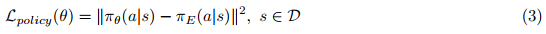 本文采用模仿学习框架训练视觉导航策略,其优势在于样本效率高且无需手工设计奖励函数。模仿学习的目标是学习一个参数化策略πθ,使其尽可能接近专家策略πE,通过最小化两者之间的差异实现。最简单的方法是行为克隆,但其在实际中常因状态分布不匹配而失败。为此,Ross & Bagnell (2010) 提出了DAgger算法,通过在线查询专家提供新演示数据。