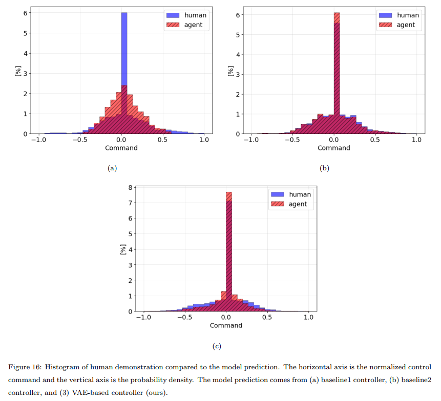 EKF、高度控制器和速度控制器在系统中扮演关键角色,确保无人机飞行的稳定性和一致性。VAE控制器避免了显式的规划-控制分解,直接从视觉输入生成控制命令,节省了计算资源。实验表明,VAE控制器在分布拟合和泛化能力方面优于基线方法,但其在树木缺失行末区域仍存在失败情况,未来可通过添加记忆模块或GPS规划器改进。