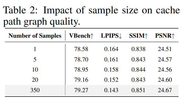 极少样本建立DAG:LeMiCa仅凭少量样本即可构建高质量缓存路径,单样本已具强性能,20个样本即达到性能饱和,体现了静态缓存策略的高效与稳健。