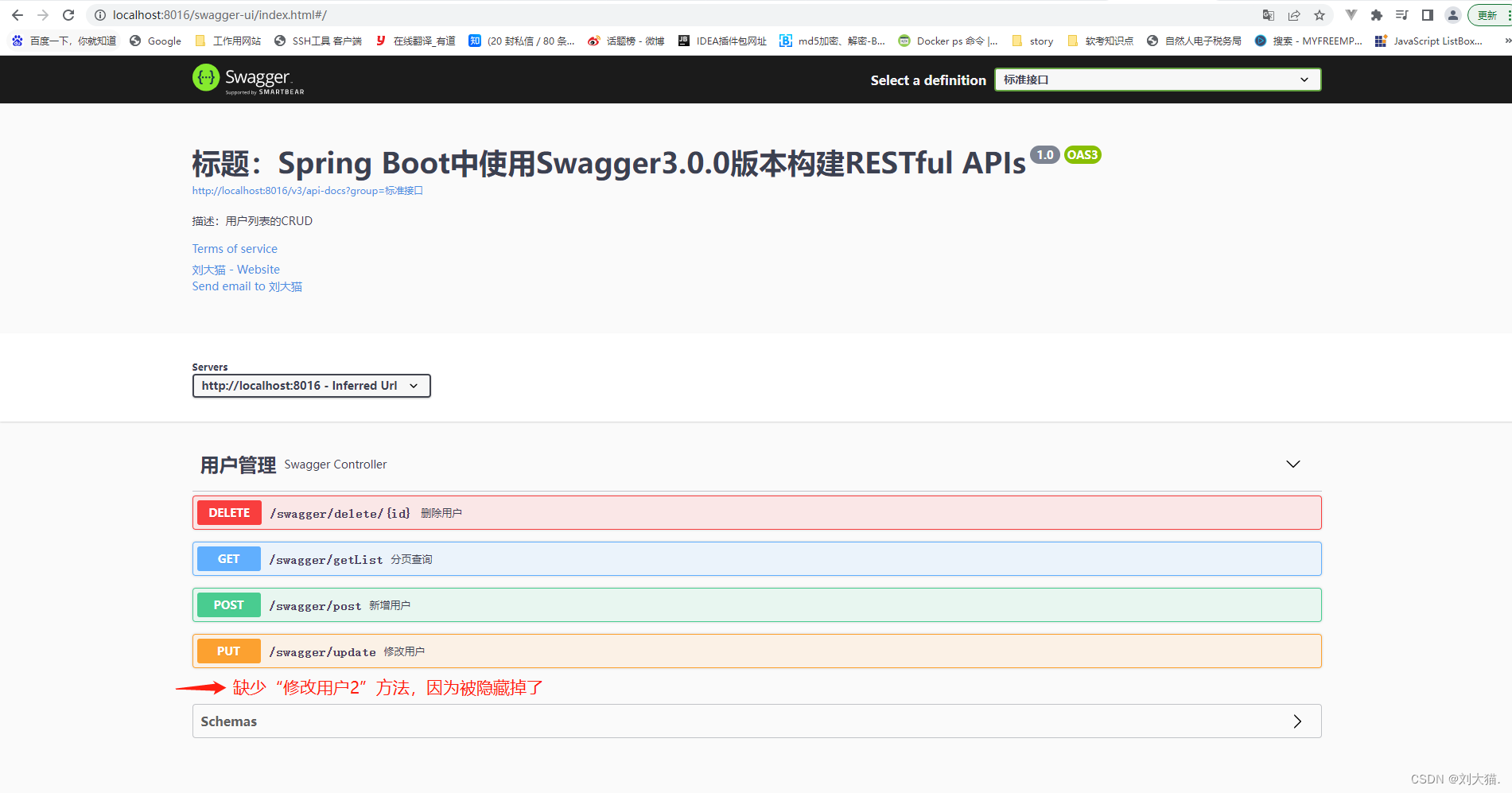 作用:表示这个方法或者类被忽略,也就是在http://ip:port/swagger-ui.html上不显示