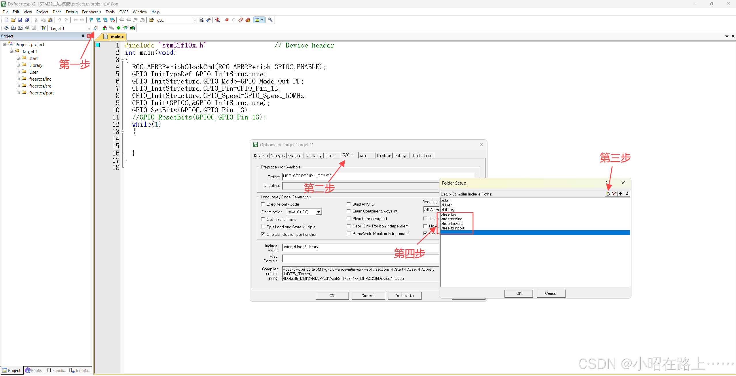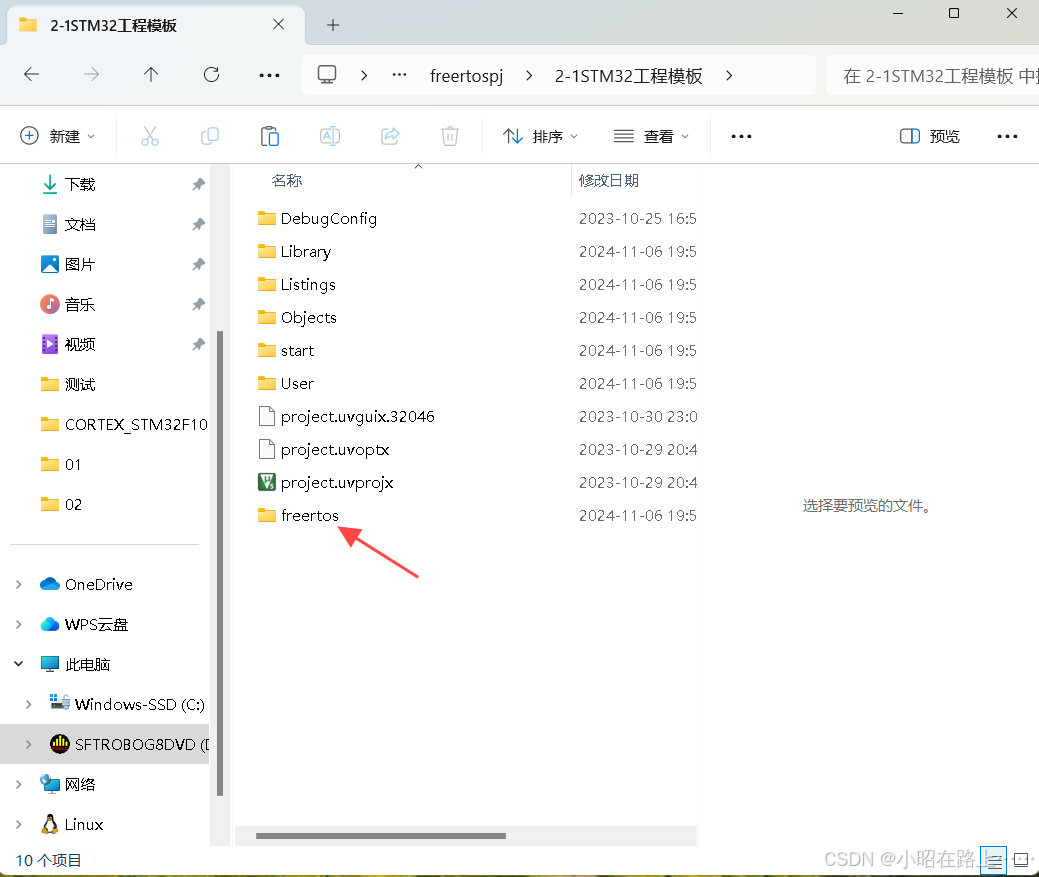 第三步:打开工程模板,创建freertos文件