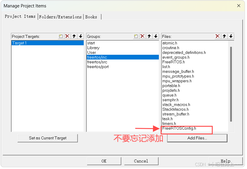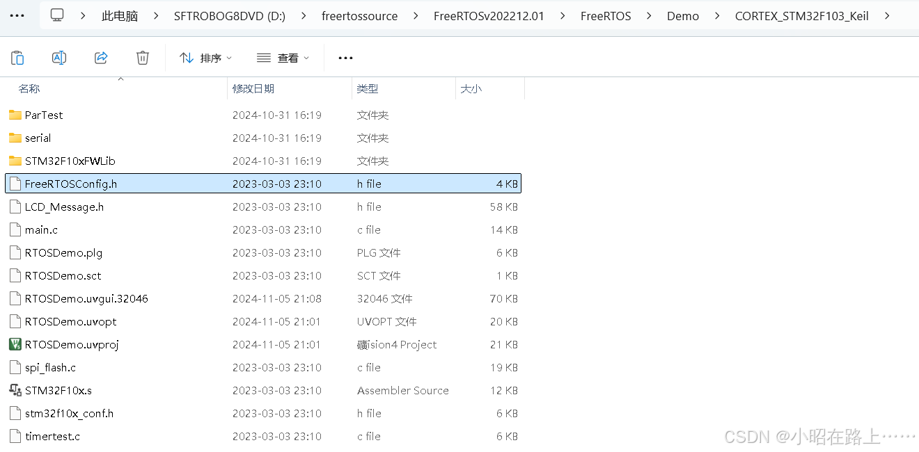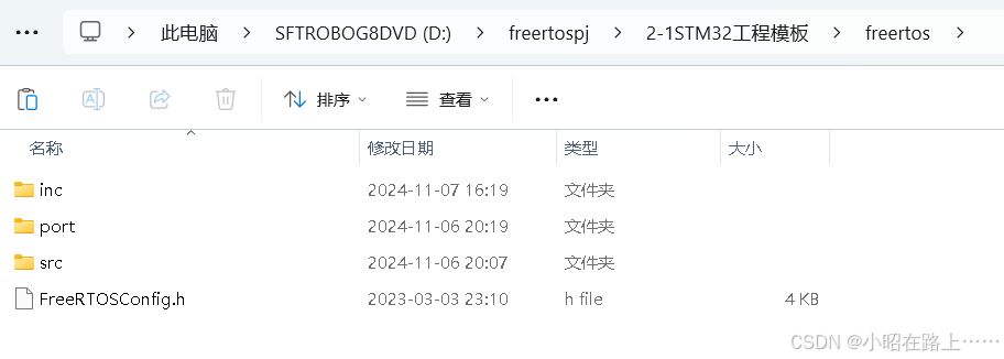 第九步:将配置文件(FreeRtosConfig.h)放在自己创建的freertos文件下和inc,src,port文件平行