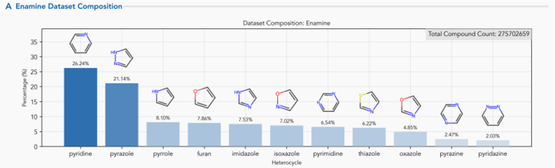 在Enamine化学数据库中,吡啶(26.24%)、吡唑(21.14%)和吡咯(8.10%)占据前三。