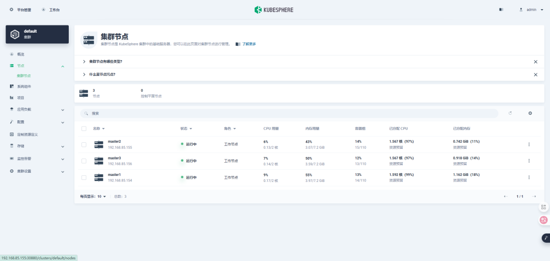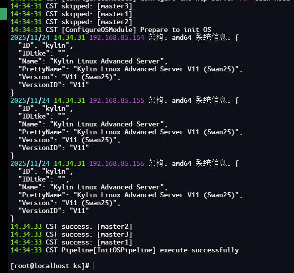 master1 | x86_64 | Kylin V11 | 2核8G | 192.168.85.154 |