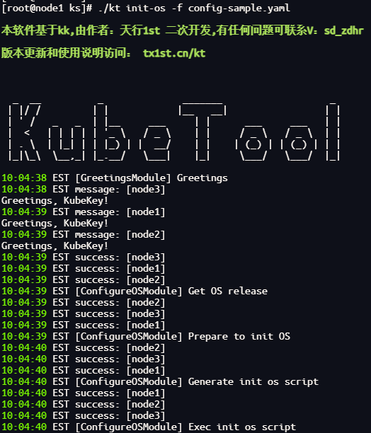操作系统不需要安装docker,不需要设置selinux,swap等操作,全新的操作系统即可。解压kt文件后执行./kt init-os -f config-sample.yaml 已适配操作系统和架构见1.说明