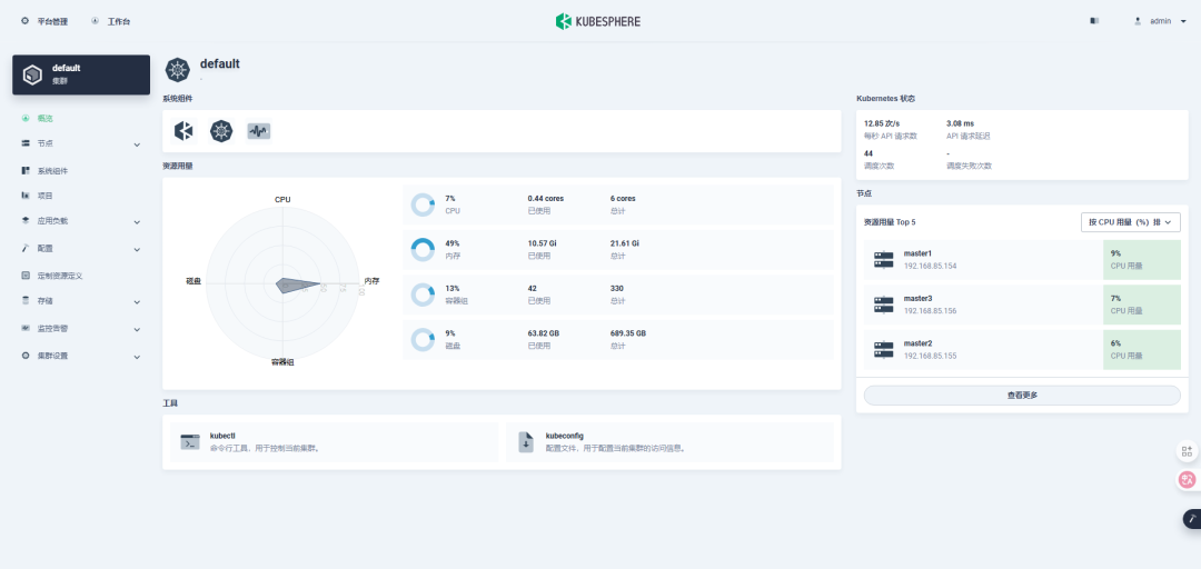 ./kt init-os -f config-sample.yaml 一条命令完成所有节点操作系统依赖安装和初始化操作。30000-32767端口,其他k8s端口添加到节点白名单。./kt firewall 一条命令自动获取节点信息开白名单和防火墙。服务器基本信息