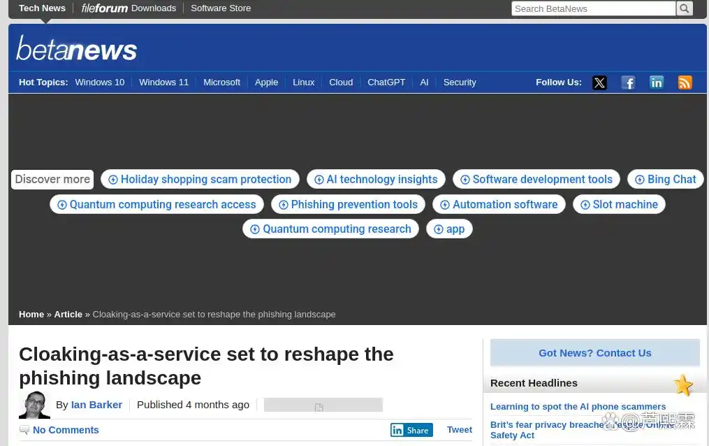 网络钓鱼作为最古老且最有效的社会工程攻击手段之一,长期占据数据泄露事件的主要入口。尽管安全厂商持续投入资源构建邮件网关、URL信誉库、浏览器安全提示等多层防线,但攻击者亦不断演化其技术策略以维持攻击有效性。近年来,一个显著趋势是攻击基础设施的“服务化”——从勒索软件即服务(RaaS)到凭证填充即服务(CaaS),再到当前兴起的“隐匿即服务”(Cloaking-as-a-Service, CaaS),网络犯罪正逐步形成模块化、租用制的地下经济生态。