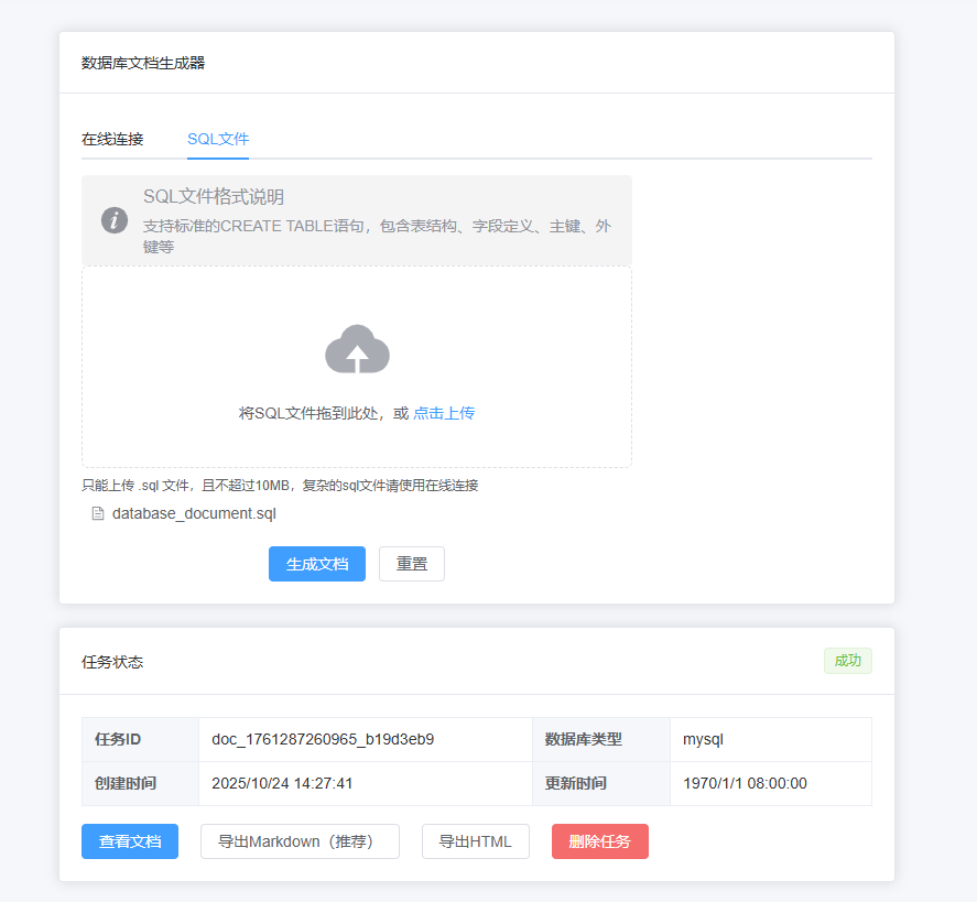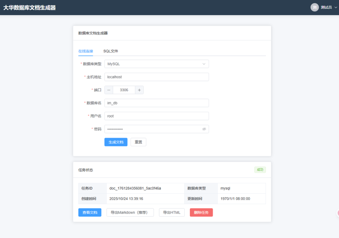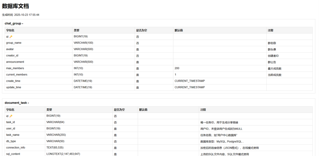 一个现代化的数据库文档自动生成工具,支持多种数据源,一键生成专业的数据库文档。