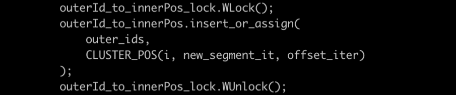 ● 多Segment快速寻址:经过多Segment调整后,通过统一的外部业务id到内部id映射,可快速定位到对应的聚簇Cluster、Segment、Segment内的offset偏移量。