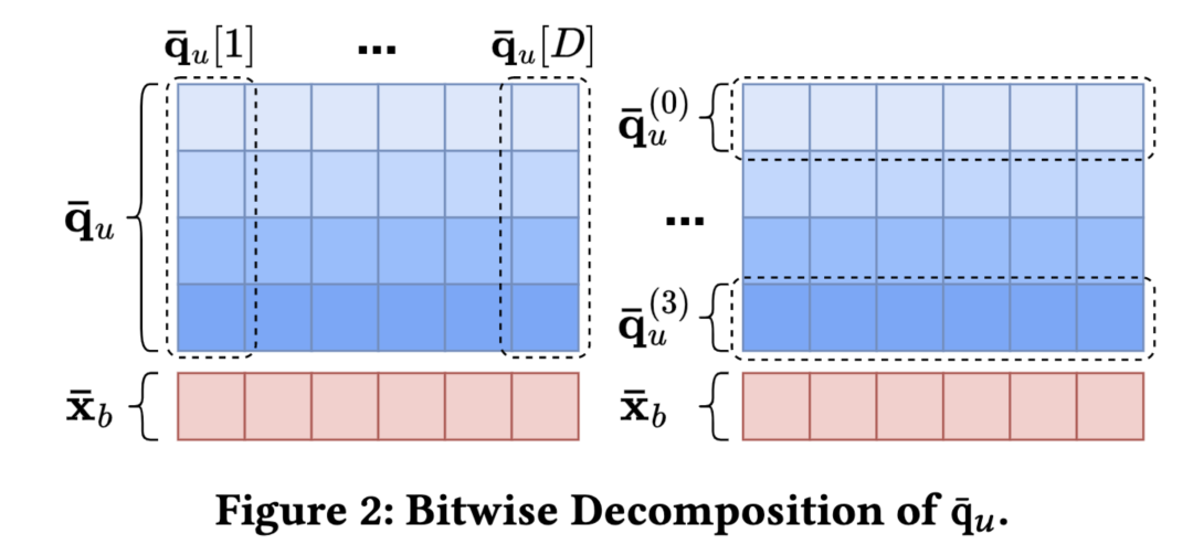 由 B-bits的整数组成,当 B等于1时,上述计算可退变成1-bit版RaBitQ。由于1-bit的计算速度很快,所以作者进一步地将
