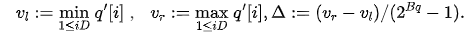决定。进一步地,采用标量量化SQ的思想,将查询向量q′的每个维度值量化为Bq个比特表示的整数。令: