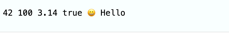 fn main() { // 整数类型 let a: i32 = 42; // 有符号 32 位 let b: u64 = 100; // 无符号 64 位 // 浮点数 let c: f64 = 3.14; // 布尔值 let is_rust_fun: bool = true; // 字符(4字节,支持 Unicode) let emoji: char = '😀'; // 字符串 let s: &str = "Hello"; // 字符串切片(不可变) let s2: String = String::from("World"); // 可增长字符串 println!("{} {} {} {} {} {}", a, b, c, is_rust_fun, emoji, s); }