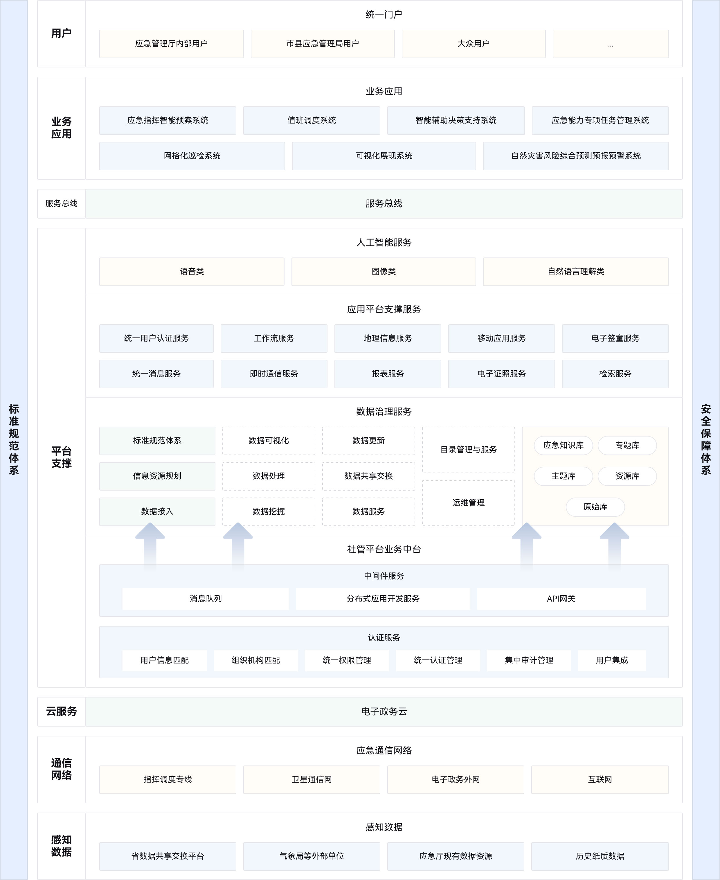 基于空天地感知、融合通信、知识图谱等技术,通过应急信息全面汇聚、快速展现、上传下达、协同会商、指挥调度和辅助决策等能力,建立反应灵敏、协同联动、高效调度、科学决策的应急指挥信息系统,实现应急救援智能化、扁平化和一体化指挥作战。