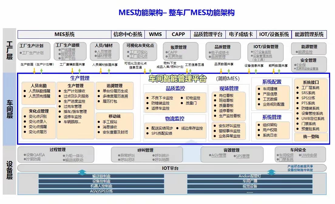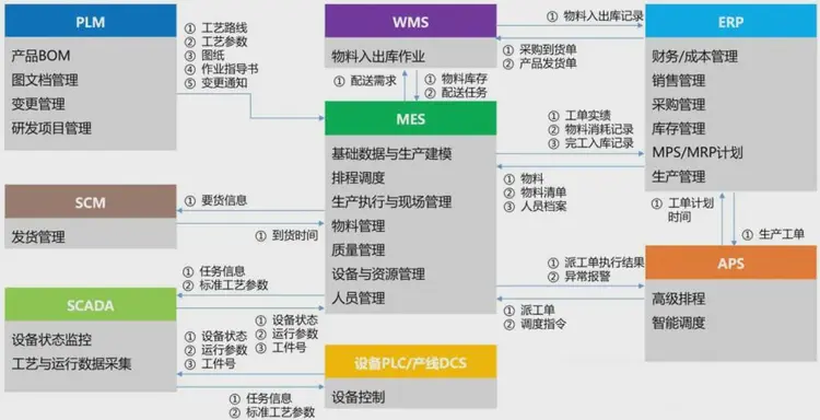 连接性:MES向上承接ERP的计划指令,向下连接PLC、CNC、机器人、传感器等自动化设备,横向与WMS、QMS等系统集成。它是连接信息世界(IT)与生产物理世界(OT)的桥梁,是实现工业互联网和数字孪生的核心枢纽。