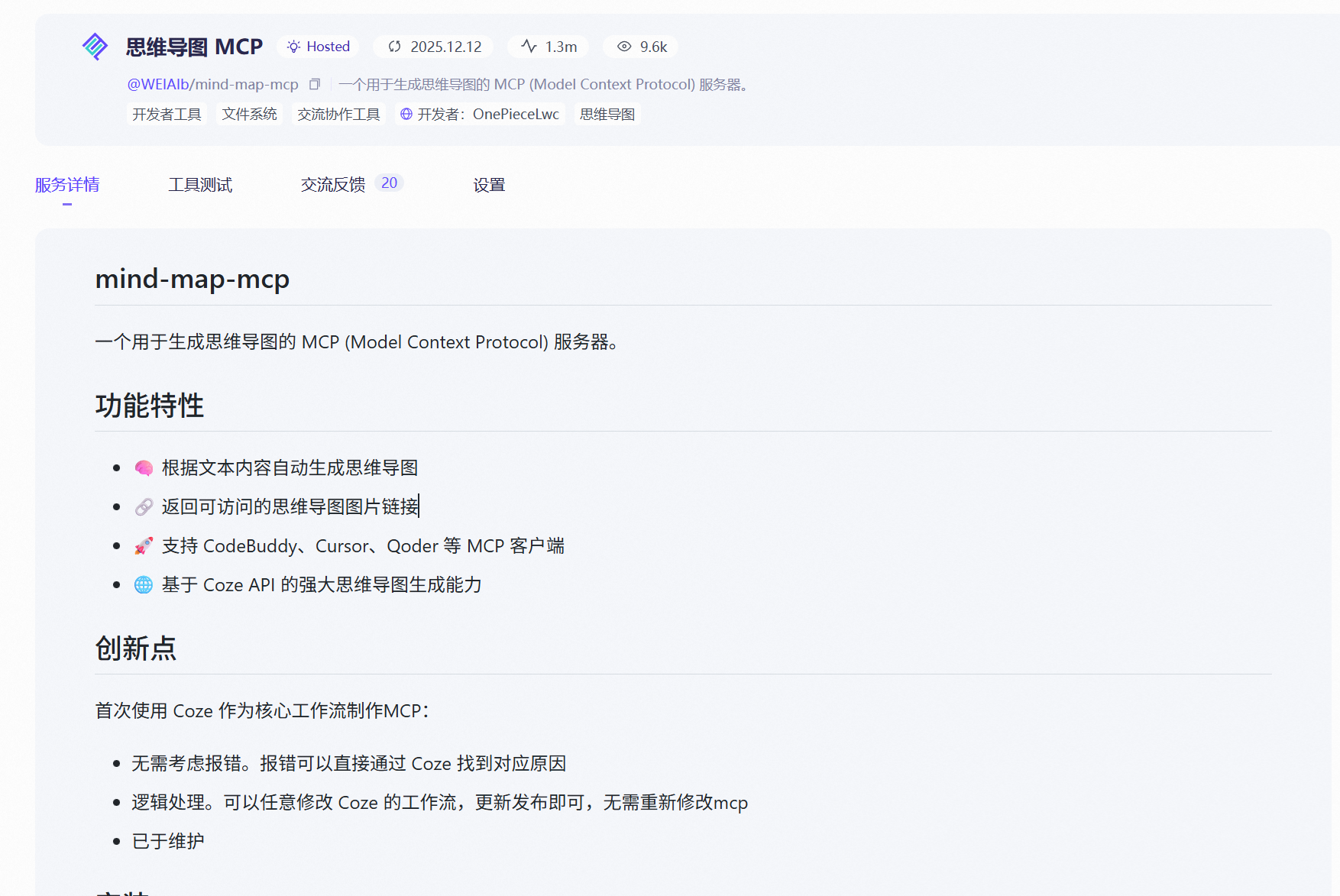 MCP 地址:https://modelscope.cn/mcp/servers/WEIAIb/mind-map-mcp