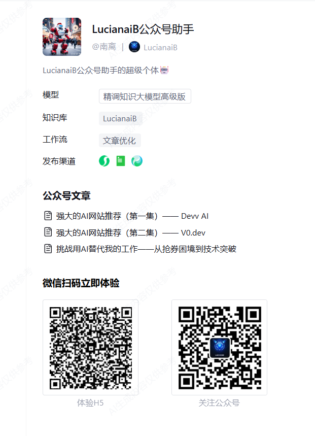 欢迎来到LucianaiB公众号助手。你可以问我关于我文章的信息,以及我可以帮助你优化文章。