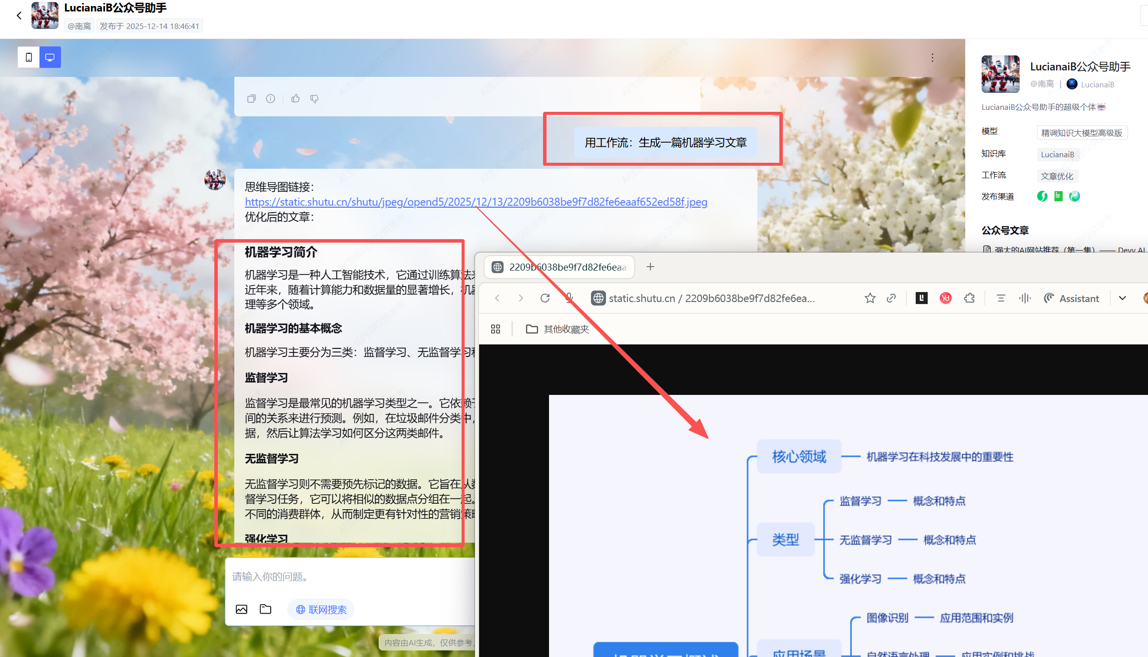可以看到成功的生成了一个思维导图,以及优化后的文章。
