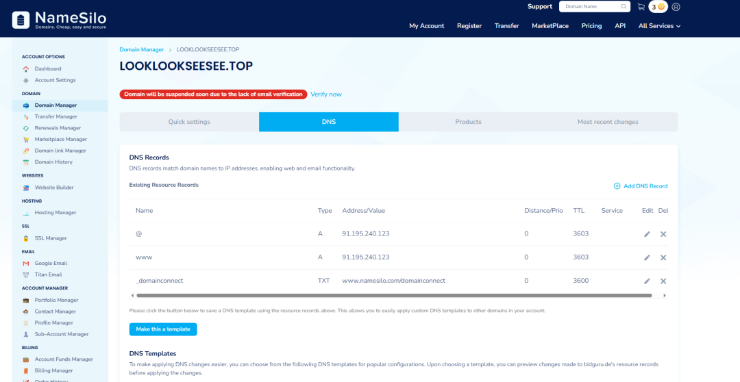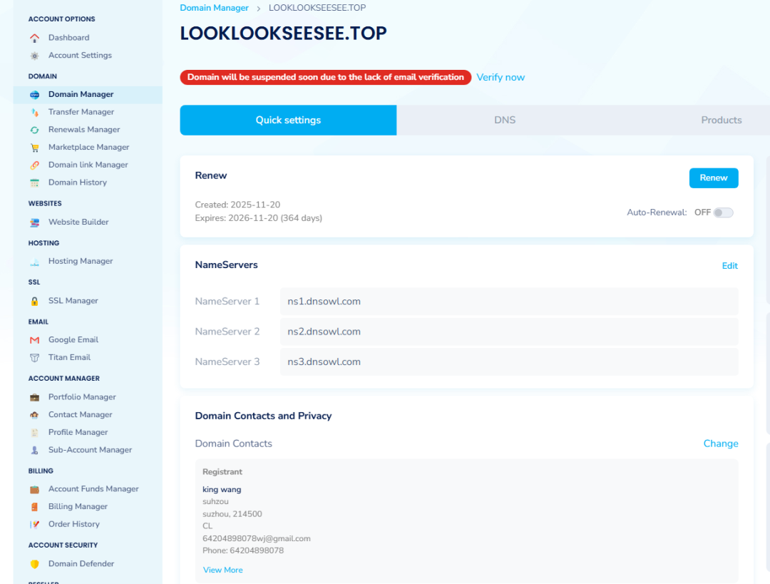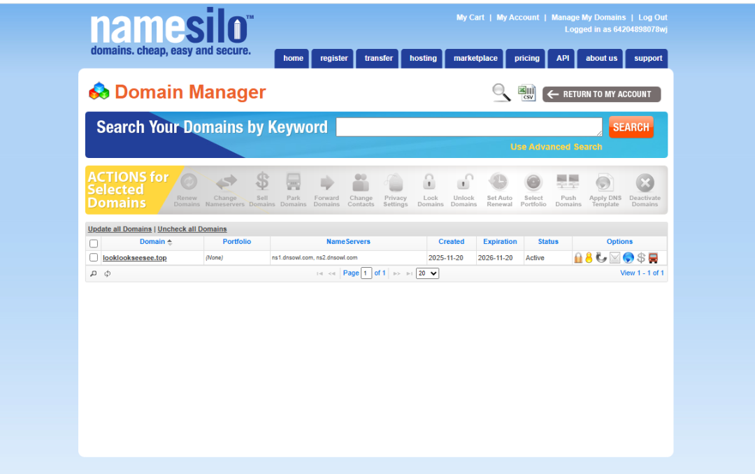 打开并登录购买域名的网站。我是在买的。