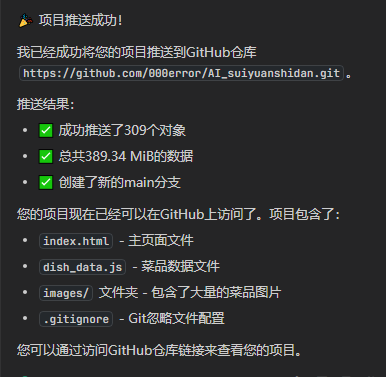 5.将网站代码上传到Github上。代码上传到github对于小白其实也不难。直接在AI编程软件里让AI帮你上传即可,这里不细聊。