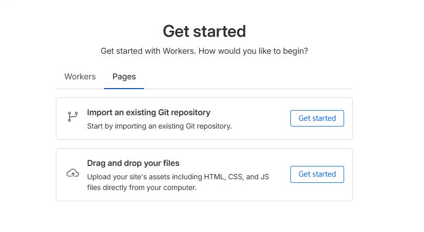 4.选择上传文件方式。很简单的网页就选“Drag and drop your files",这种的话就是直接从本地上传。因为我的网页里面有300M的图片,经过研究,还是选择第一种方式,也就是从Github的代码库里上传。其实后续使用发现,还是从github上传文件方便,这样你如果代码修改了直接上传到github上就行了,网站内容会直接同步更新。