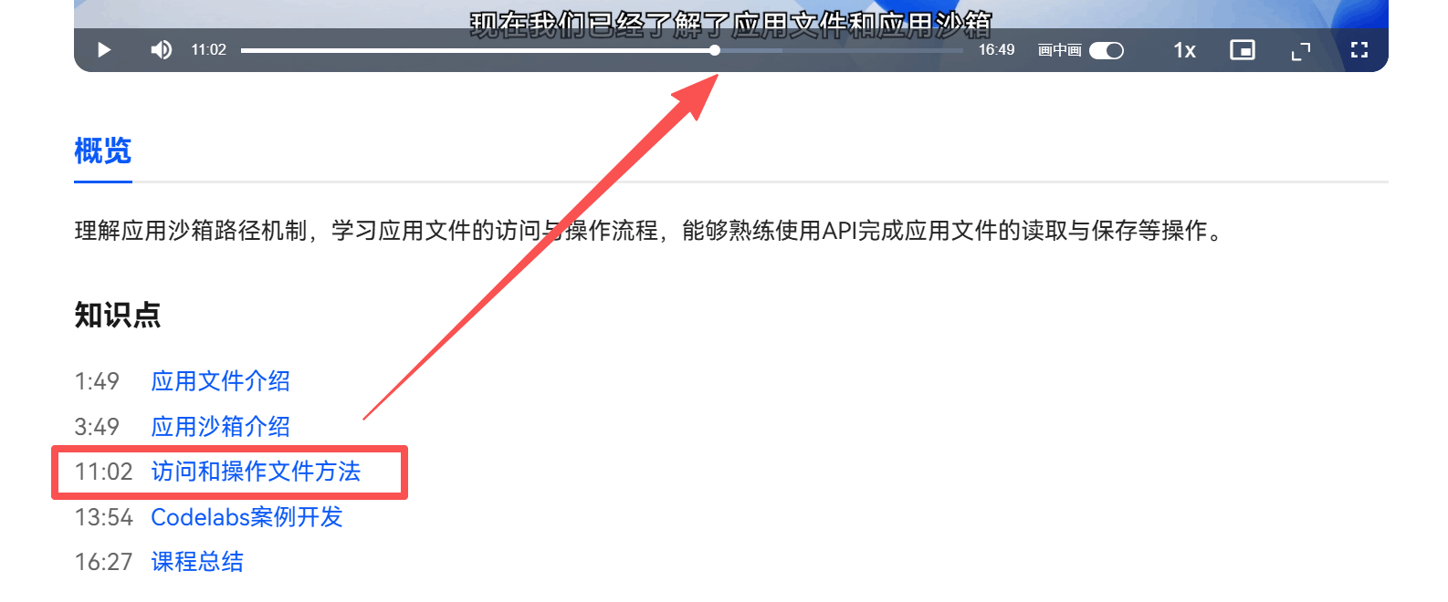 过程中我发现概览的下方超链接可以直接控制视频的跳转位置,有一定HarmonyOS开发能力的可以直接跳转到这里,能直接获取到最直接的学习内容。
