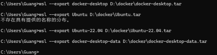 wsl --export docker-desktop D:\docker\docker-desktop.tar