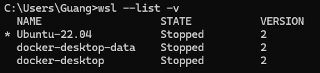 wsl --list -v如果你安装了docker,你的主要数据都会存在 docker-desktop-data 里面,当然建议你将所有内容都迁移出C盘,一步到位。