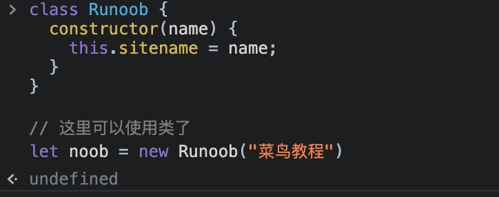 let noob = new Runoob("菜鸟教程")使用前没有声明会报错: