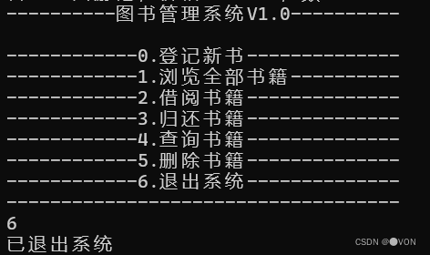 通过 switch 语句根据用户输入执行相应的操作:登记新书、浏览书籍、借阅书籍、归还书籍、查找书籍、删除书籍、退出系统等。