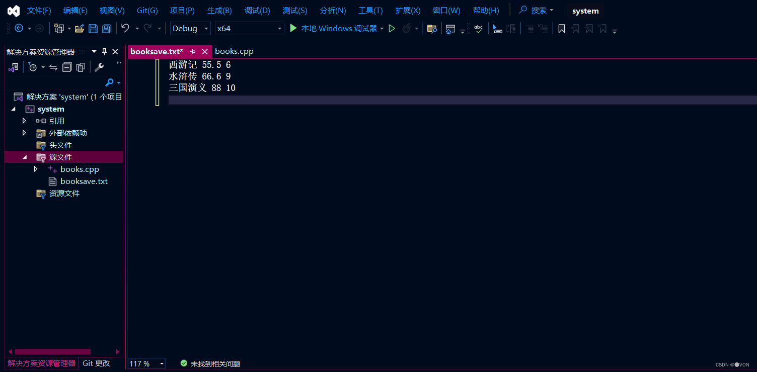 注:使用前要先在该项目下创建“booksave.txt”文本文件,如果不想应用文件操作可以删除对应函数及函数的调用操作。