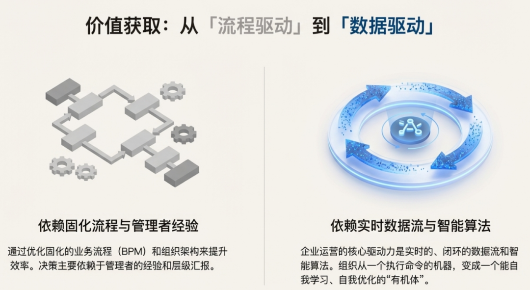 这就是从“流程驱动”到“数据驱动”的终极形态。决策权从人的大脑,转移到了数据和算法。企业的核心竞争力,不再是某几个人的经验,而是整个系统自我学习和进化的能力。