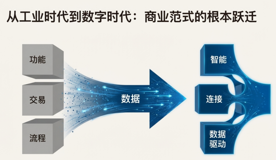 从追求更多的“交易”,到建立更深的“连接”,这是数字化转型的第二个根本转变。没有连接,就没有数据;没有数据,一切智能优化都只是空谈。