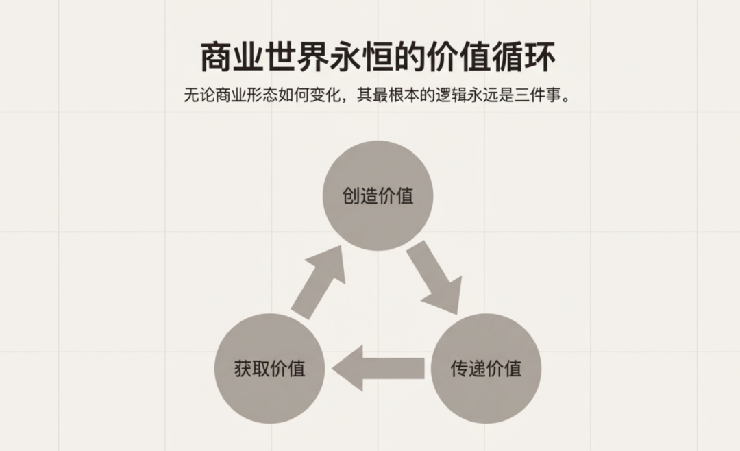 那么,商业的第一性原理是什么?几千年来都没变过:创造价值,传递价值,获取价值。