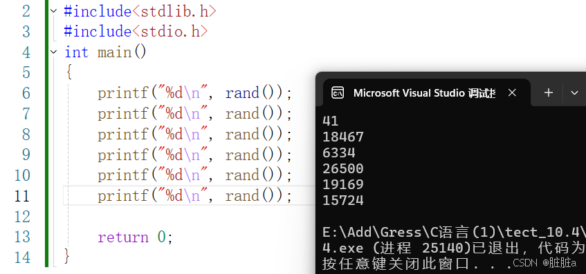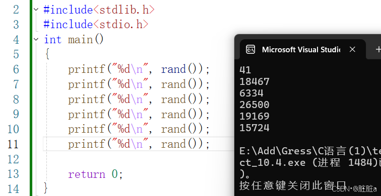 int rand(void)该函数会返回一个伪随机数,这个随机数的生成范围实在0到RAND_MAX之间,