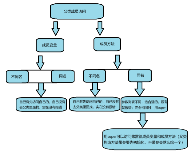 子类自己有优先访问自己的,如果没有去父类里面找,有就用父类的,都没有报错!!!
