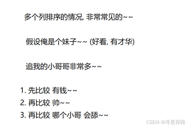 #注:sql 带有 order by, order by 执行是在列的表达式求值之后的~~ (1)遍历表,取出每一行~~ (2)把当前行代入到条件中,判定这一行是否要保留~~ (3)根据 select 的列名,把这里的列筛选出来/计算表达式的值/定义别名~~ (4)order by 排序~~