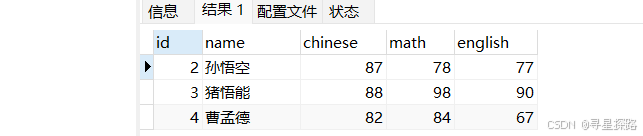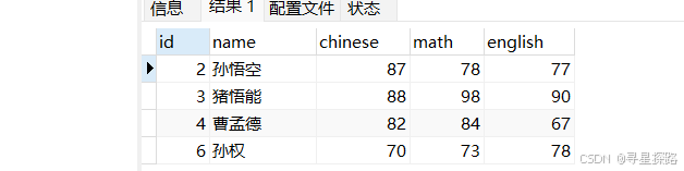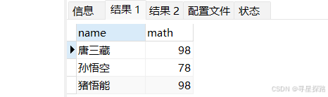SELECT ... FROM table_name [WHERE ...] ORDER BY {col_name | expr } [ASC | DESC], ... ;按数学成绩从低到高排序(升序)