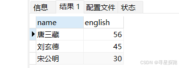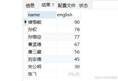 查询英语不及格的同学及英语成绩(<60)