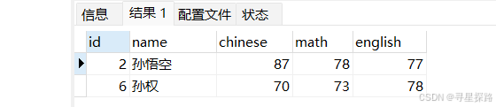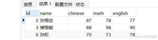 select * from exam where name like '孙%';