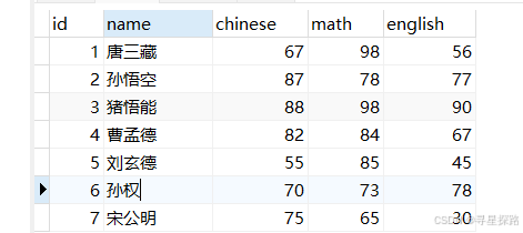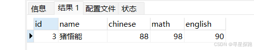 # 写⼊⼀条数据,英语成绩为NULL