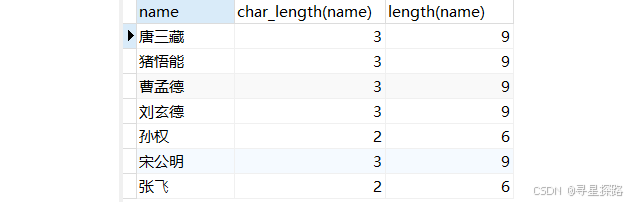 select name, char_length(name), length(name) from exam;