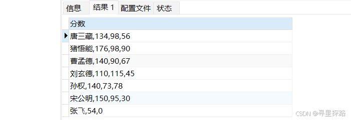 select CONCAT_WS(',',name,chinese,math,english) 分数 from exam;