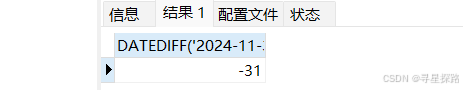 SELECT DATEDIFF('2024-11-30 23:59:59','2024-12-31');