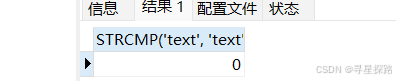 select STRCMP('text', 'text');