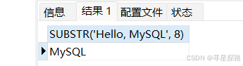 select SUBSTR('Hello, MySQL' FROM 8 FOR 1);# 从'Hello, MySQL'的第⼋个字符开始截取10个字符,不⾜10个读到整个字符串结尾